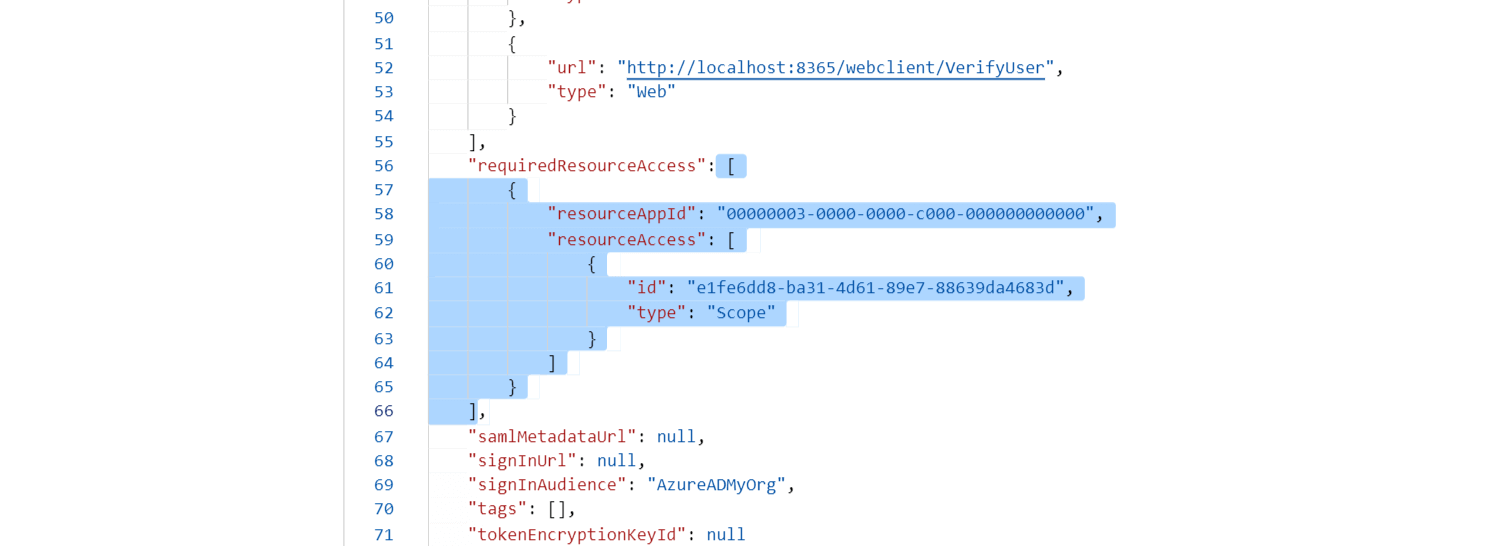 - コード中でrequiredResourceAccessを検索します。