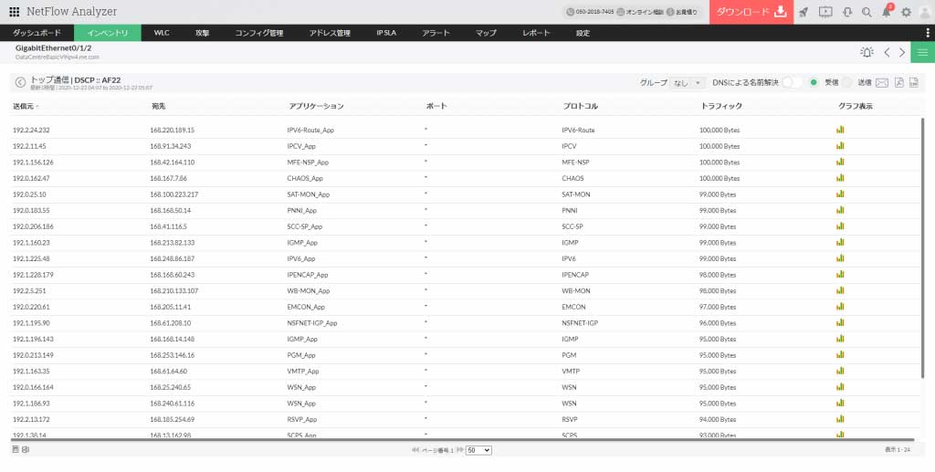 QoS監視機能では、設定されているDSCPに関連するトラフィック情報について、送信元IPアドレスと以下の情報の組み合わせでトラフィック量を把握できます。