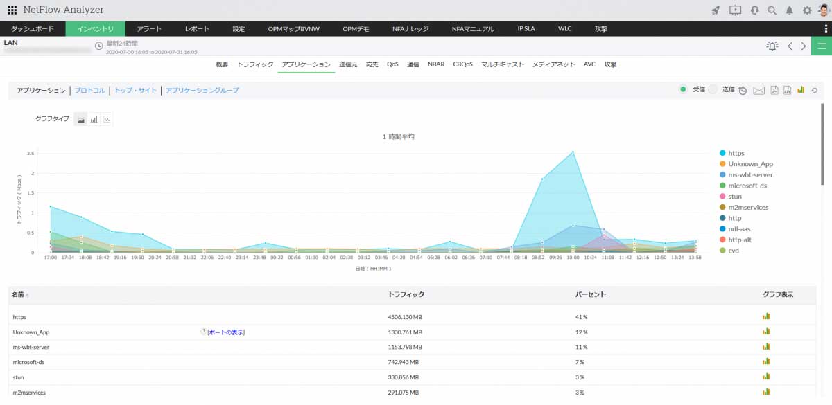 トラフィック可視化機能では、ネットワーク帯域を流れるトラフィックに関する情報を様々な視点で、詳細に可視化できる機能です。以下のような視点でトラフィック量を可視化できます。
