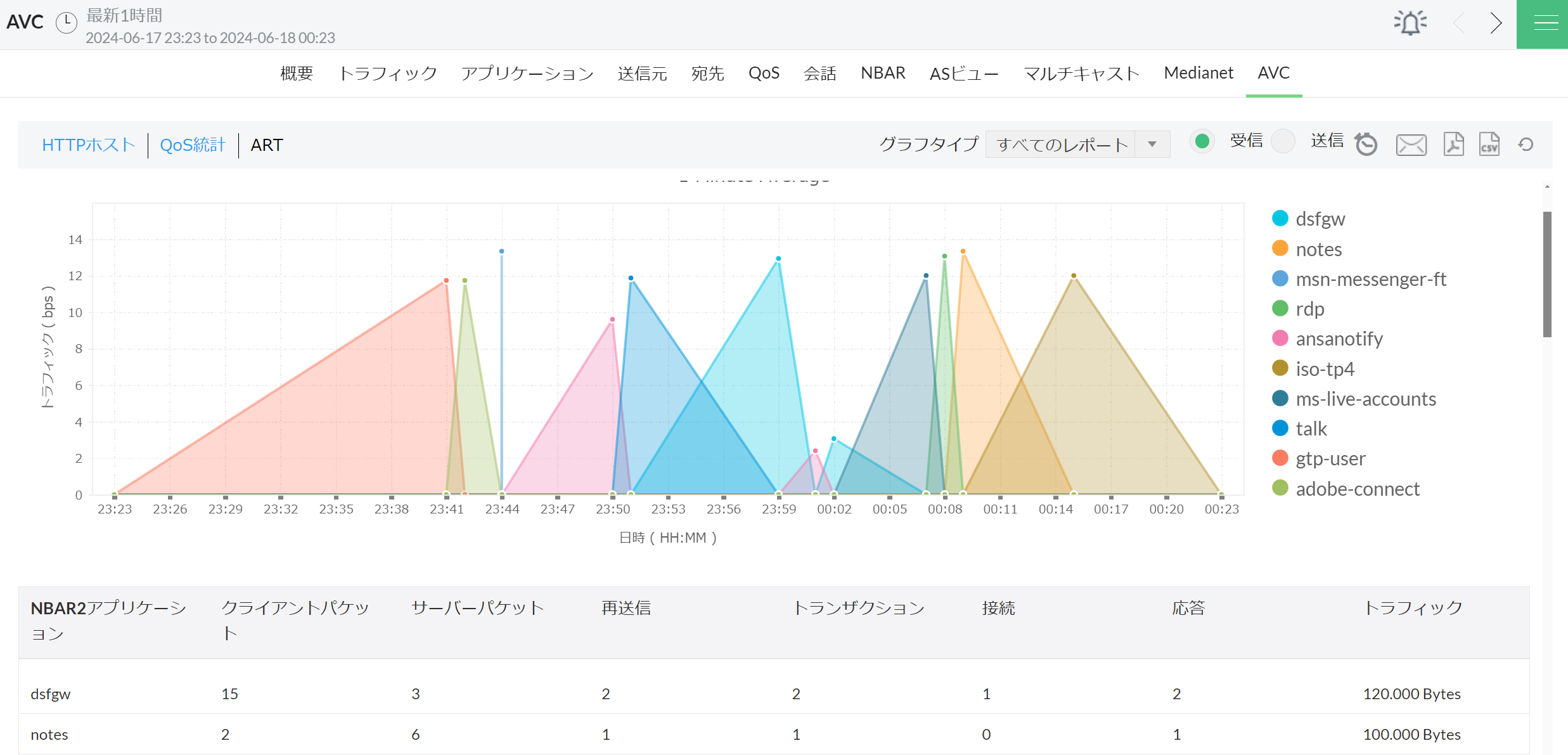 Cisco Application Visibility and Control(以下AVC)を使用すると、ネットワーク内のアプリケーションのトラフィック使用率やパフォーマンスを確認できます。