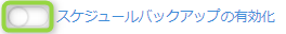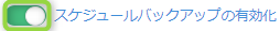 - 「スケジュールバックアップの有効化」のボタンアイコン(トグルスイッチ)をクリックして有効化(緑色に)します。