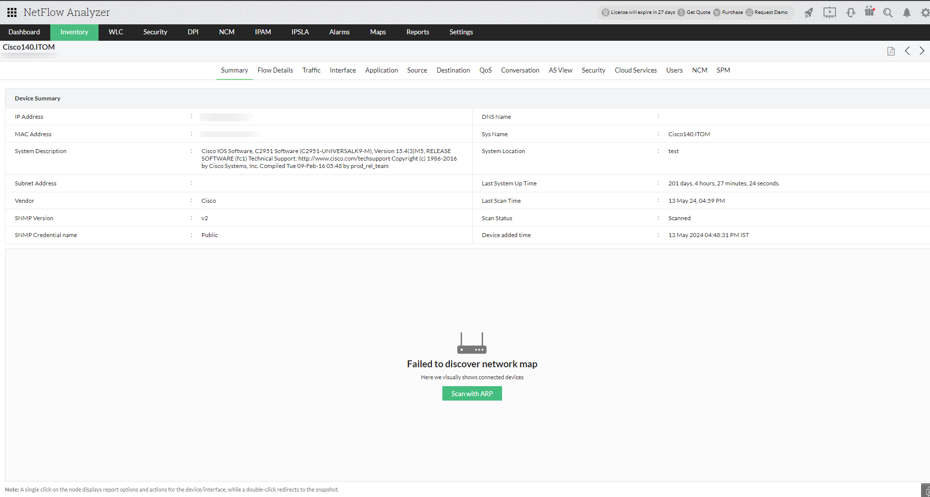 - 特定のデバイスに管理IPが追加されている場合、管理IPを使用してネットワークマップを生成します。