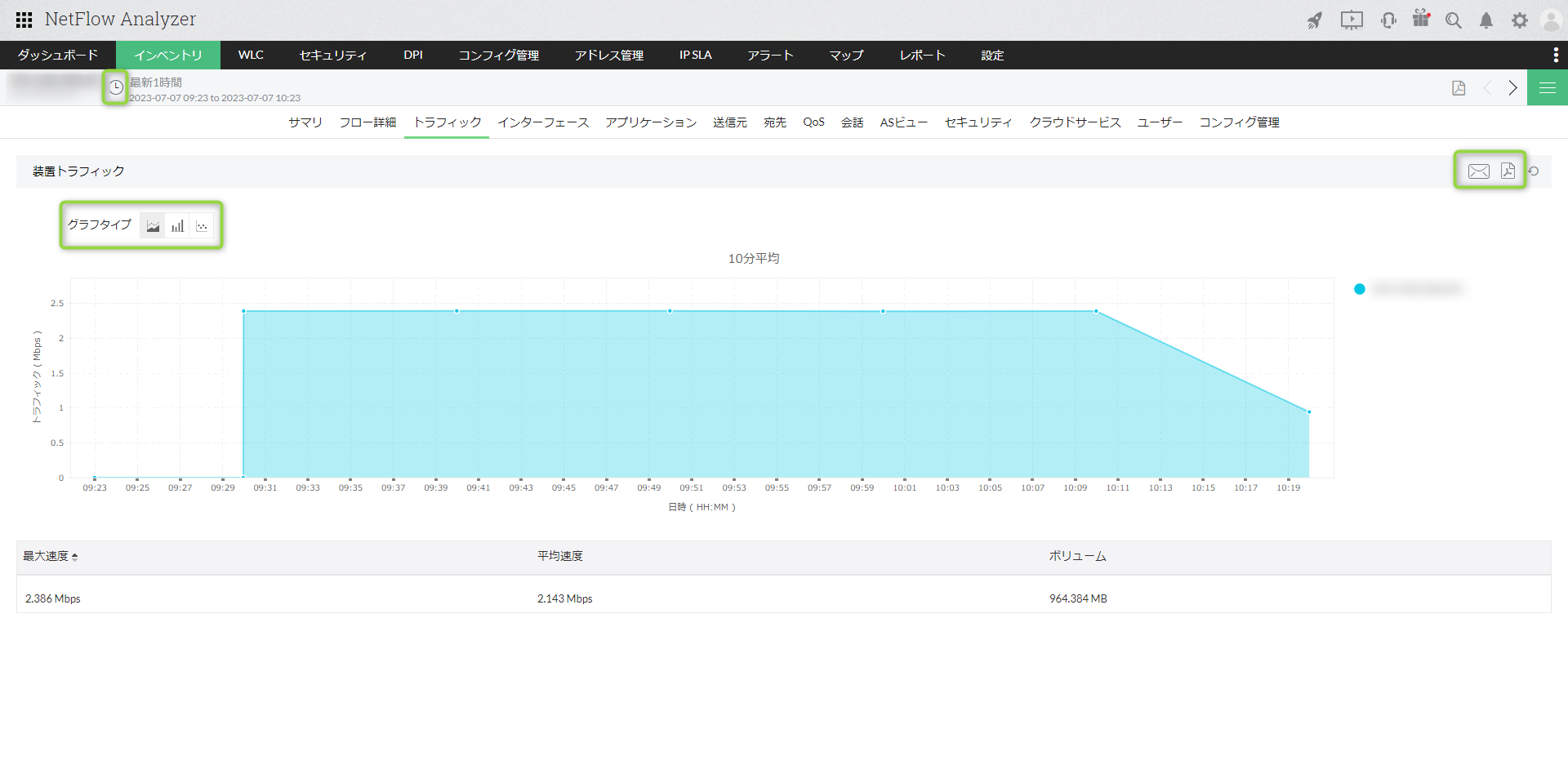 [インベントリ]→[装置]→任意装置(ルーター)をクリック→[トラフィック]