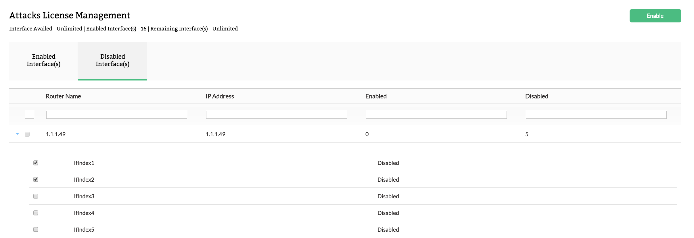 - インターフェースを有効にするには、「無効なインターフェース」からインターフェースを選択します。