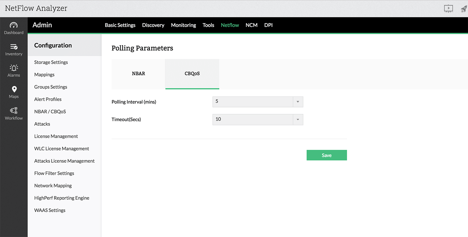 - 「設定」 > 「フロー解析」 > 「CBQoS」に移動します。