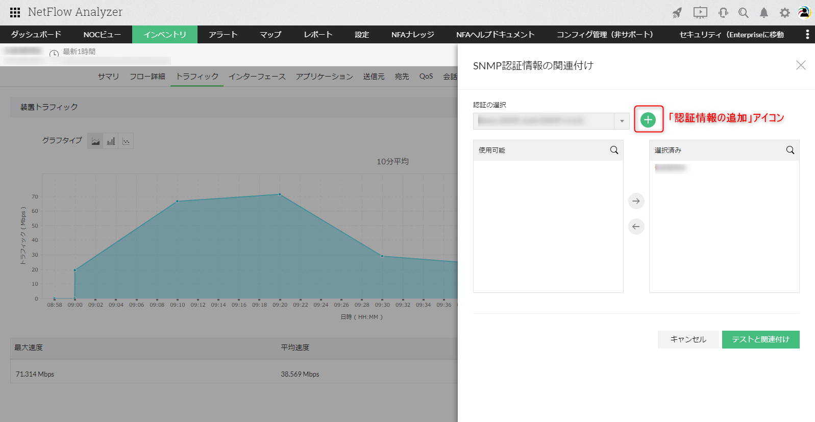 - [SNMP認証情報の関連付け]をクリックします。
