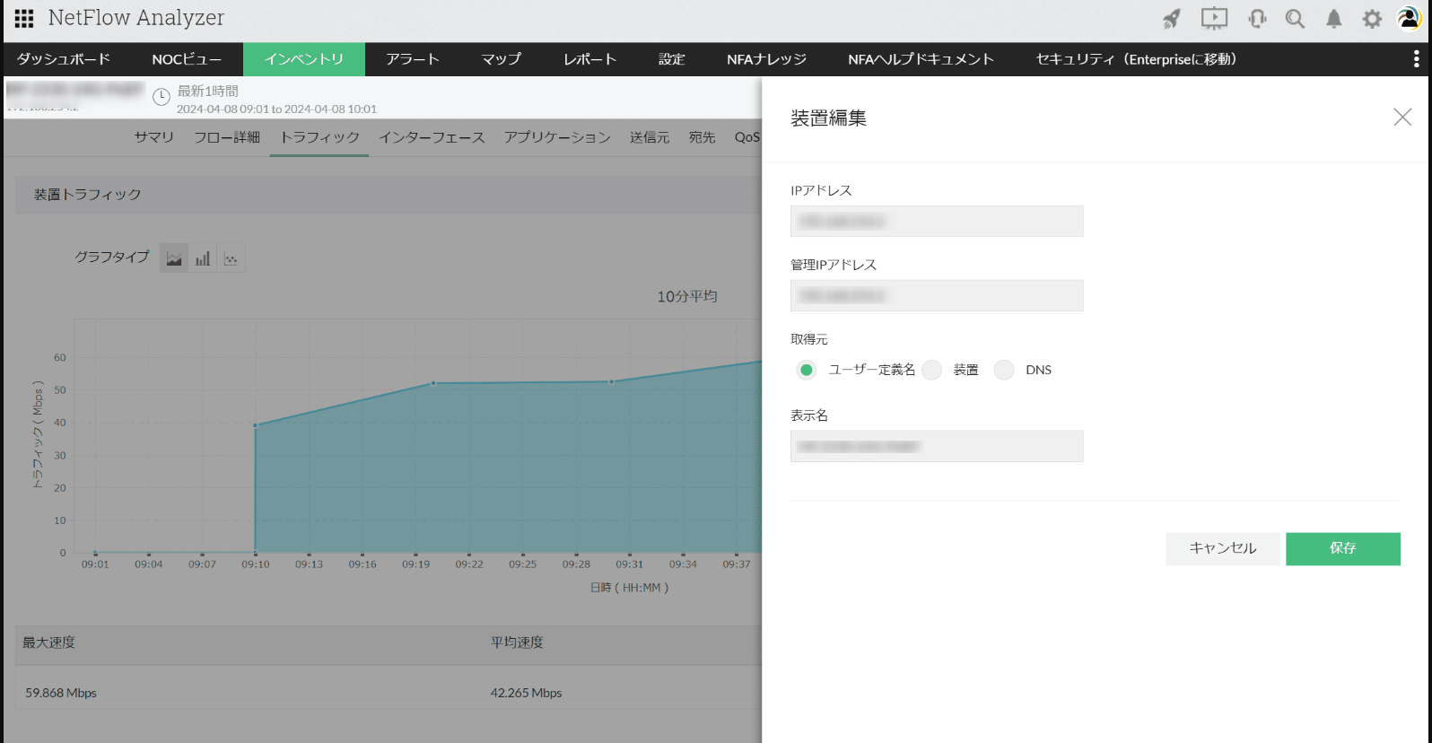 特定の装置情報を編集するには、メニューから[装置情報の編集]をクリックします。「装置編集」画面で、以下3つのオプションから装置情報の取得元を選択して[保存]をクリックします。