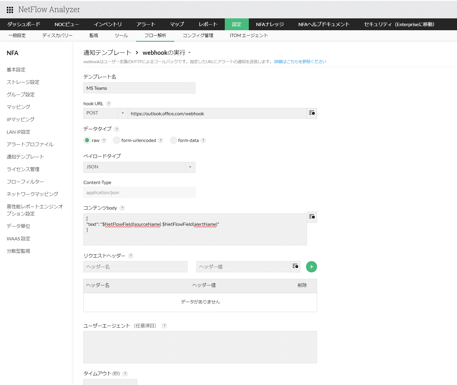 以上で、NetFlow AnalyzerとMS Teamsを連携するWebhookの設定は完了です。