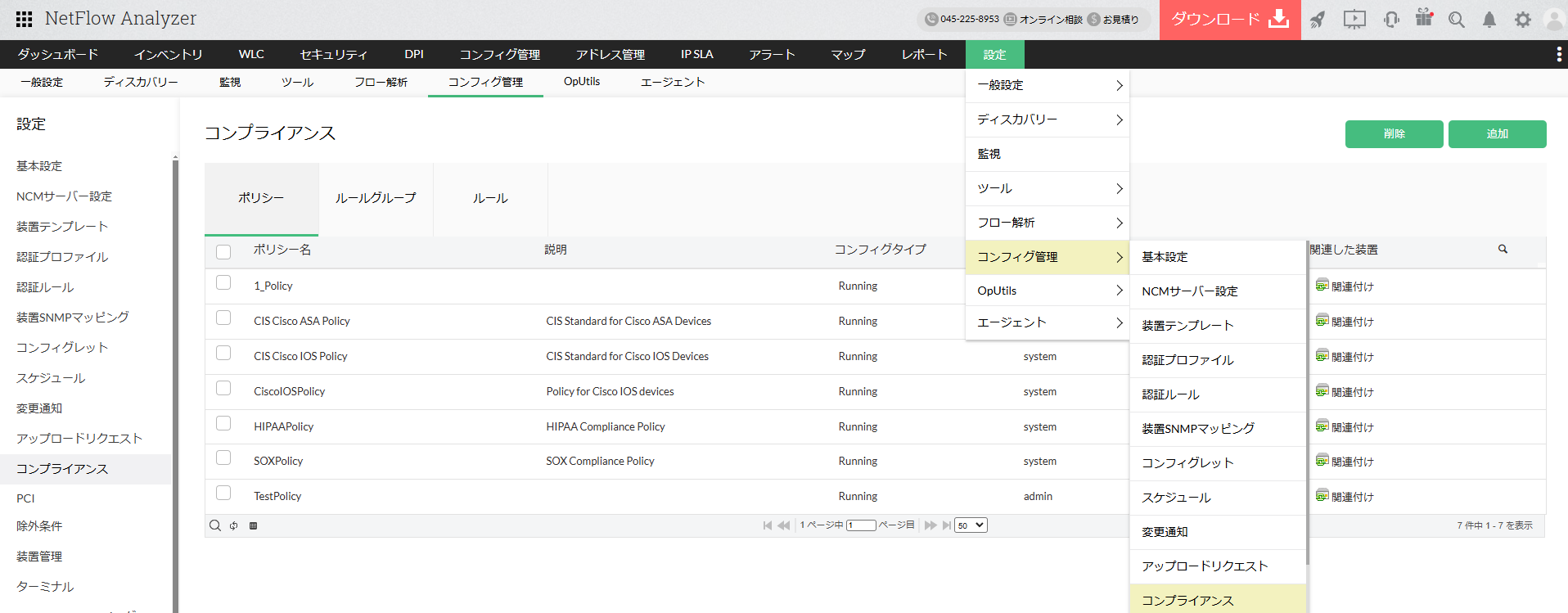 コンフィグ管理 - コンプライアンス設定(NCMオプション)
