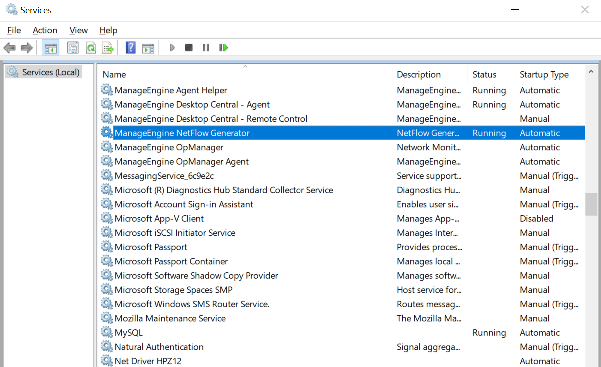 - インストールが終了すると、NetFlow Generatorはサービスとしてバックグラウンド実行を開始し、実行ステータスは次のように確認されます。