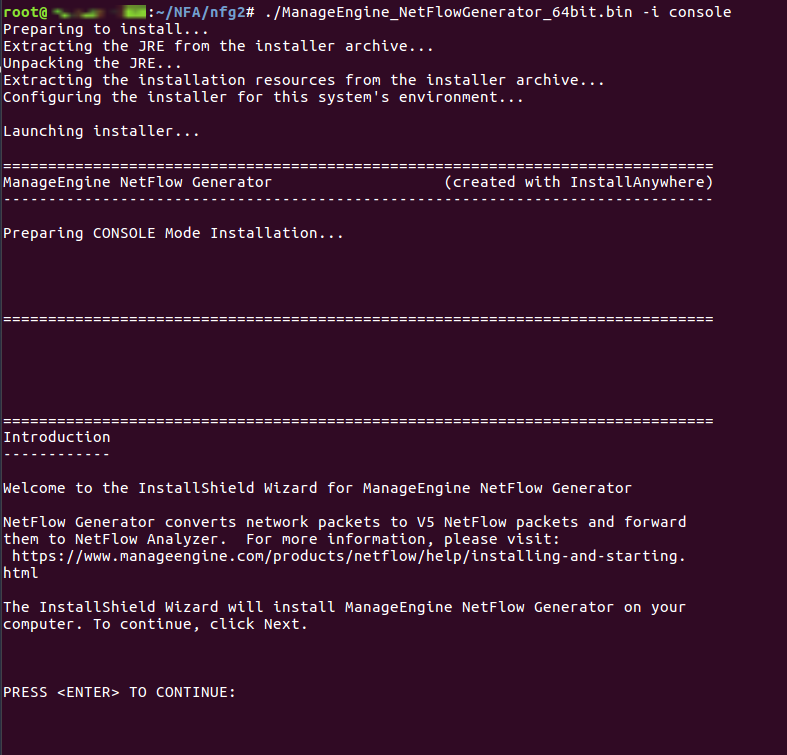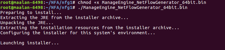 chmod +x ManageEngine_NetFlowGenerator_64bit.bin - 次のコマンドで実行可能ファイルを起動します。