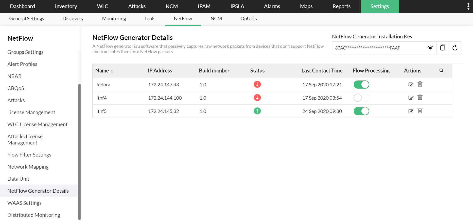| IPアドレス | NetFlow Generatorが動作するIPアドレスです。 |