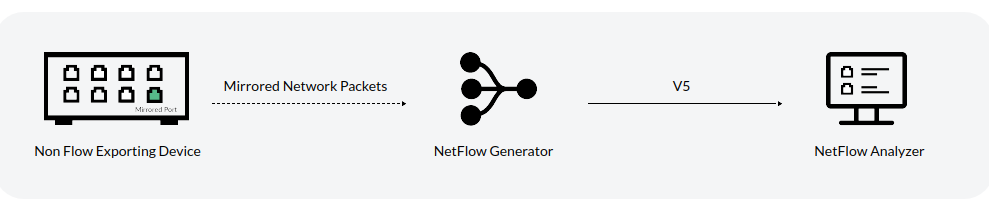 NetFlow Generatorは、NetFlow Analyzerの無料オプションです。フロー未対応の装置が混ざっている環境でも、NetFlowバージョン5に準じたトラフィック可視化が可能になります。