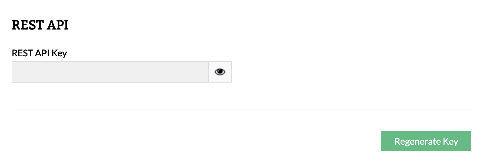 「REST API」タブでは、現在のAPIキーの表示とキーの再作成ができます。