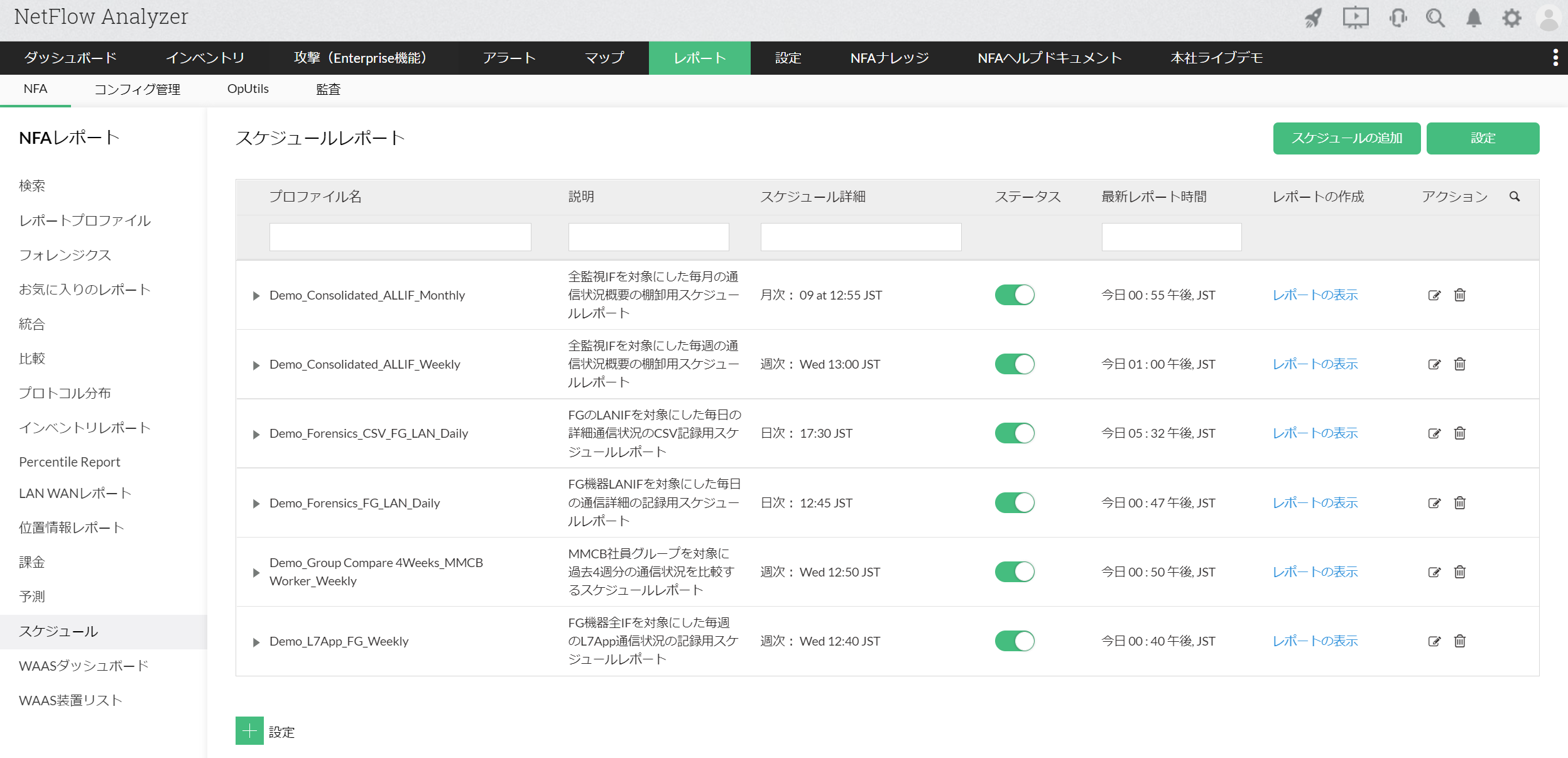 ※1スケジュールレポートあたりのインターフェース数または、インターフェースグループ数は、100を超えない範囲での設定を推奨しています。