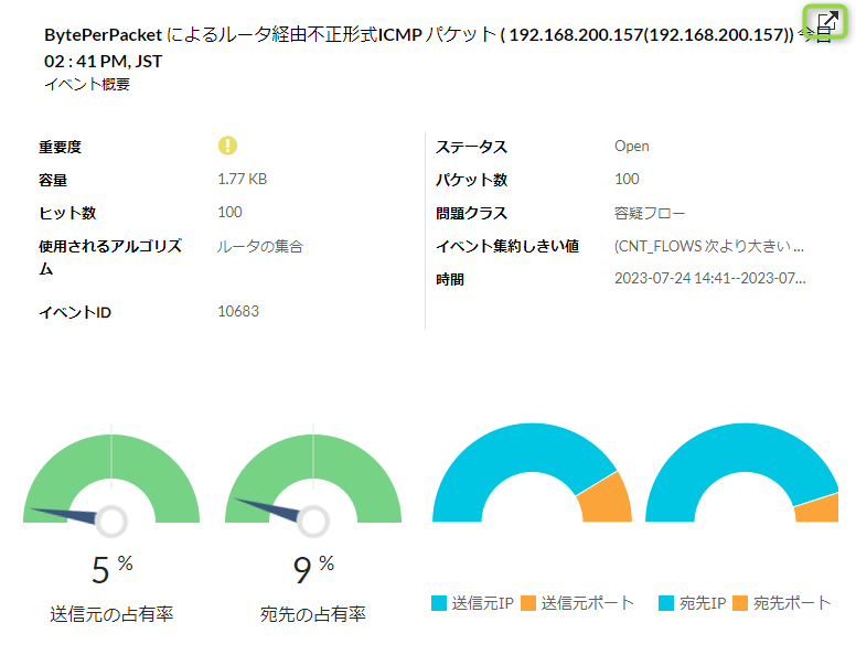 | 不良送信元・宛先 | 監視パケット内の送信元/宛先IPアドレスが疑わしい |