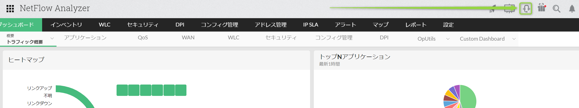 - 画面右上のヘッドセット(サポート)アイコンをクリックします。