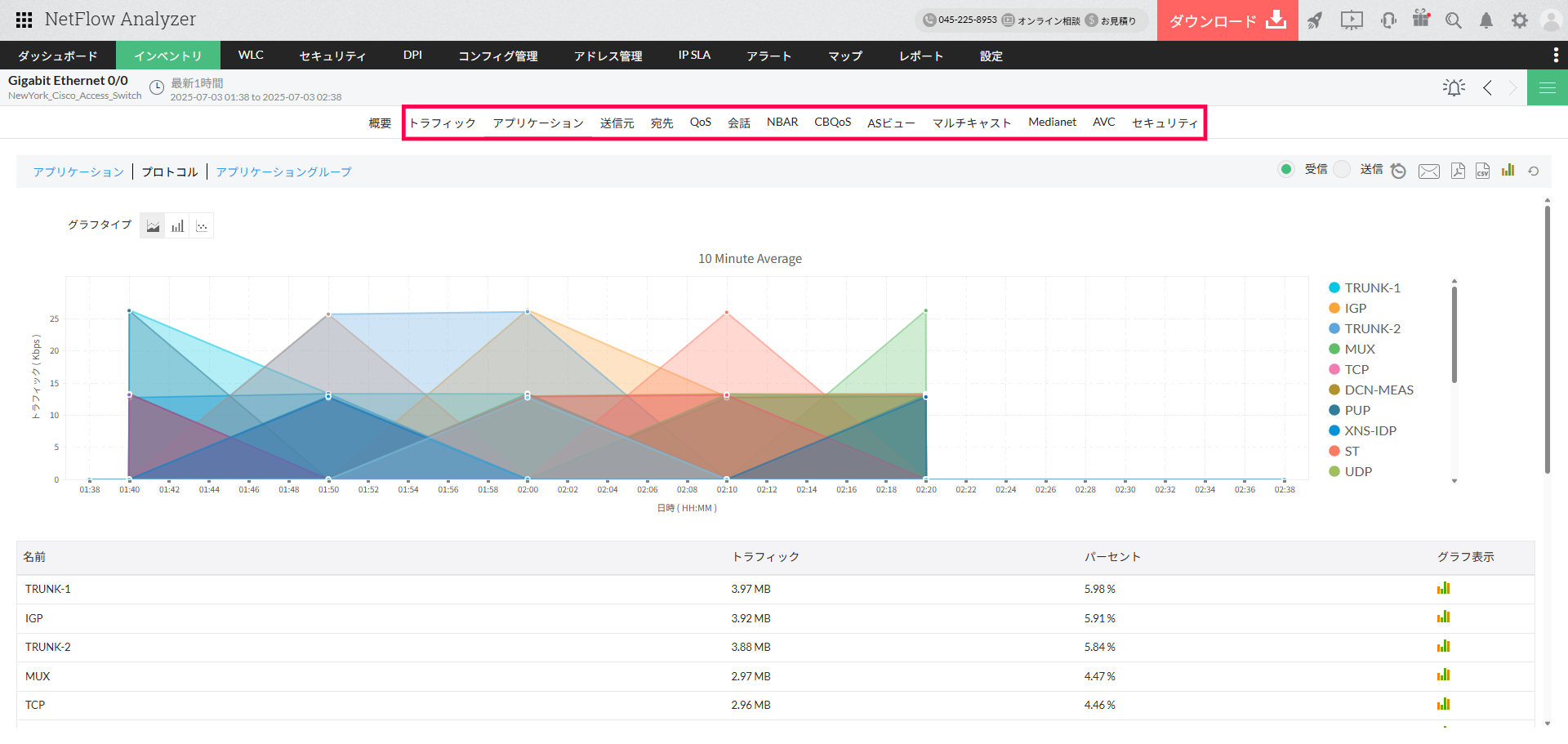 特定のタブを非表示に設定を変更した場合、以下の画像の赤枠部分にあるタブが非表示になります。