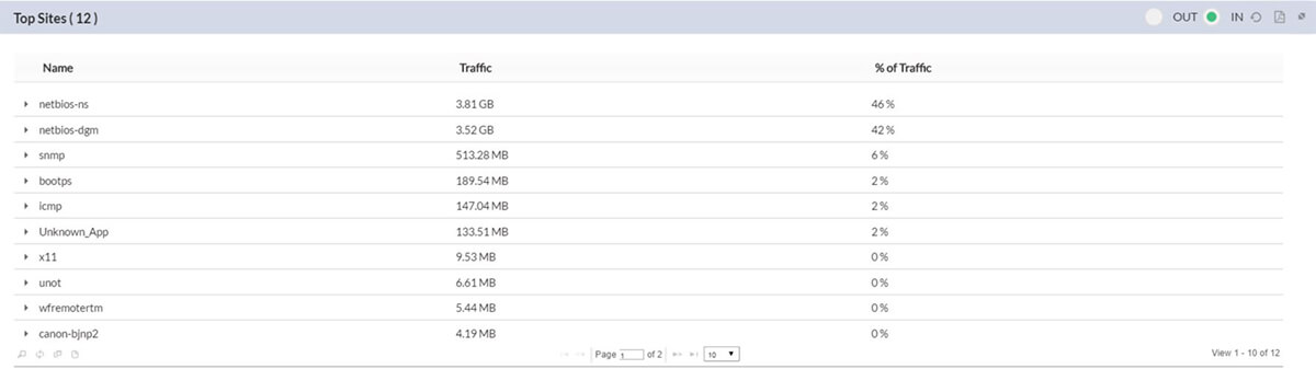 このレポートには、最大ネットワーク トラフィックの原因となっているアプリケーションが表示されます。