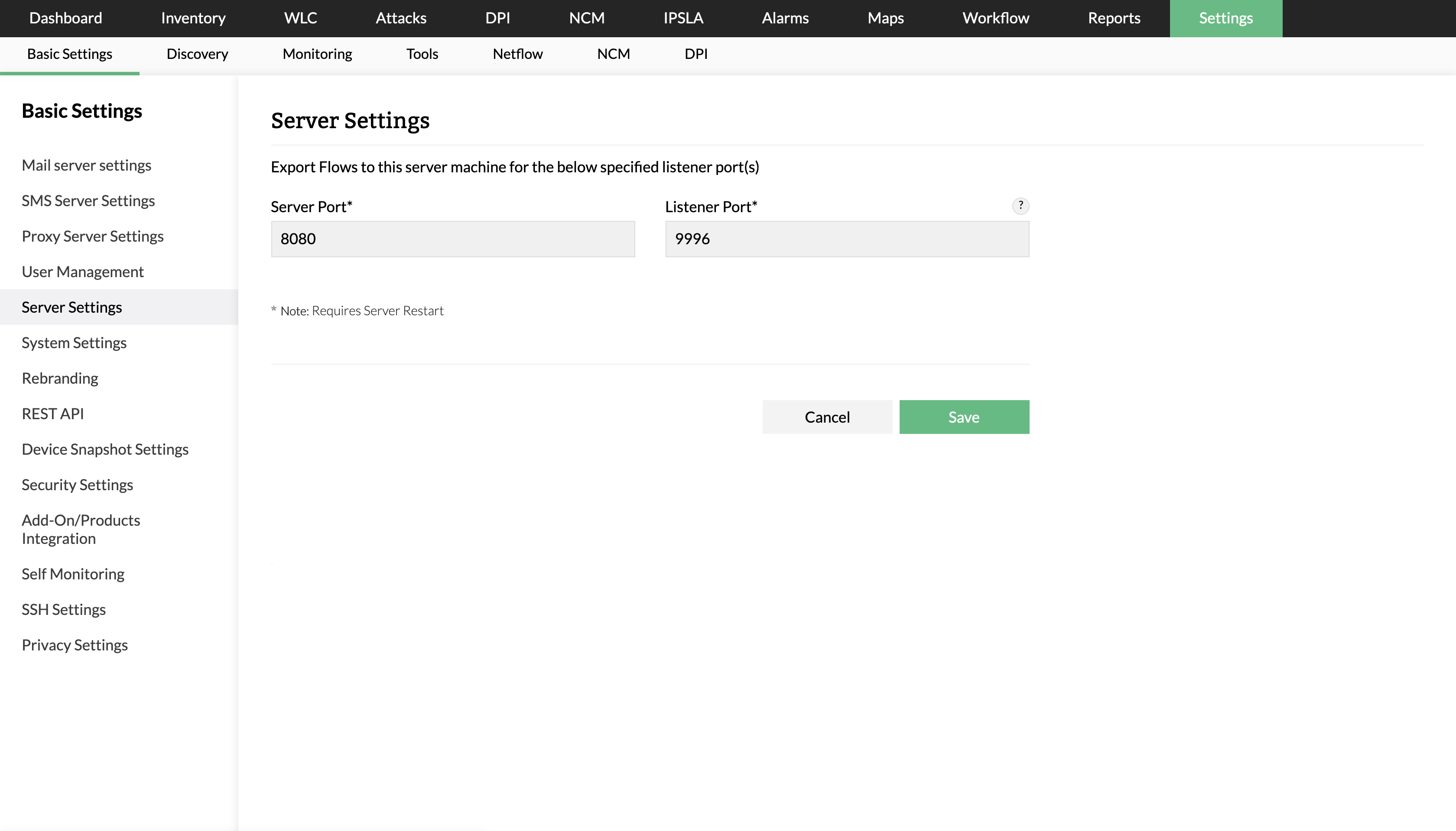 Windowsファイアウォールでブロックされているため、リスニング ポートでフローが受信されません。この問題を解決するには、NetFlow Analyzerのリスニング ポートを他のポートに変更します。他の選択肢として、UDPリスニング ポート(受信)のWindowsファイアウォールを無効にして、フロー パケットを許可する方法もあります。
