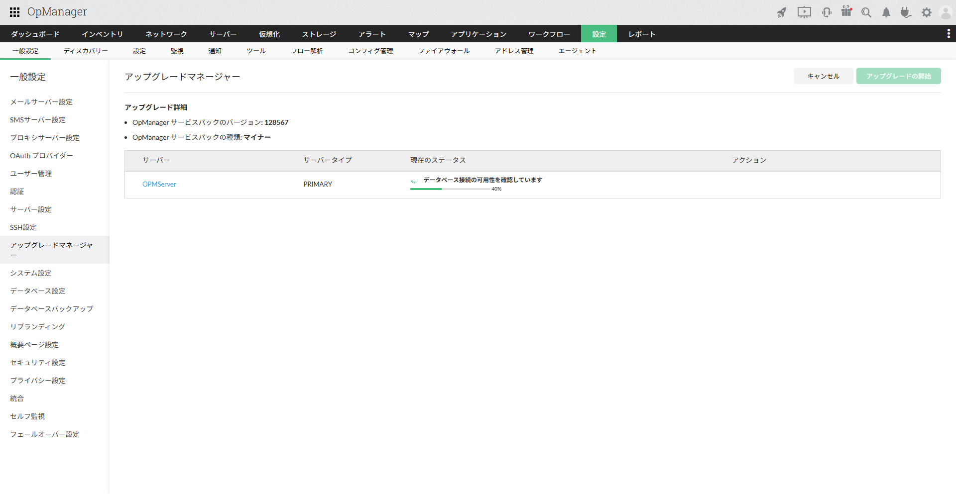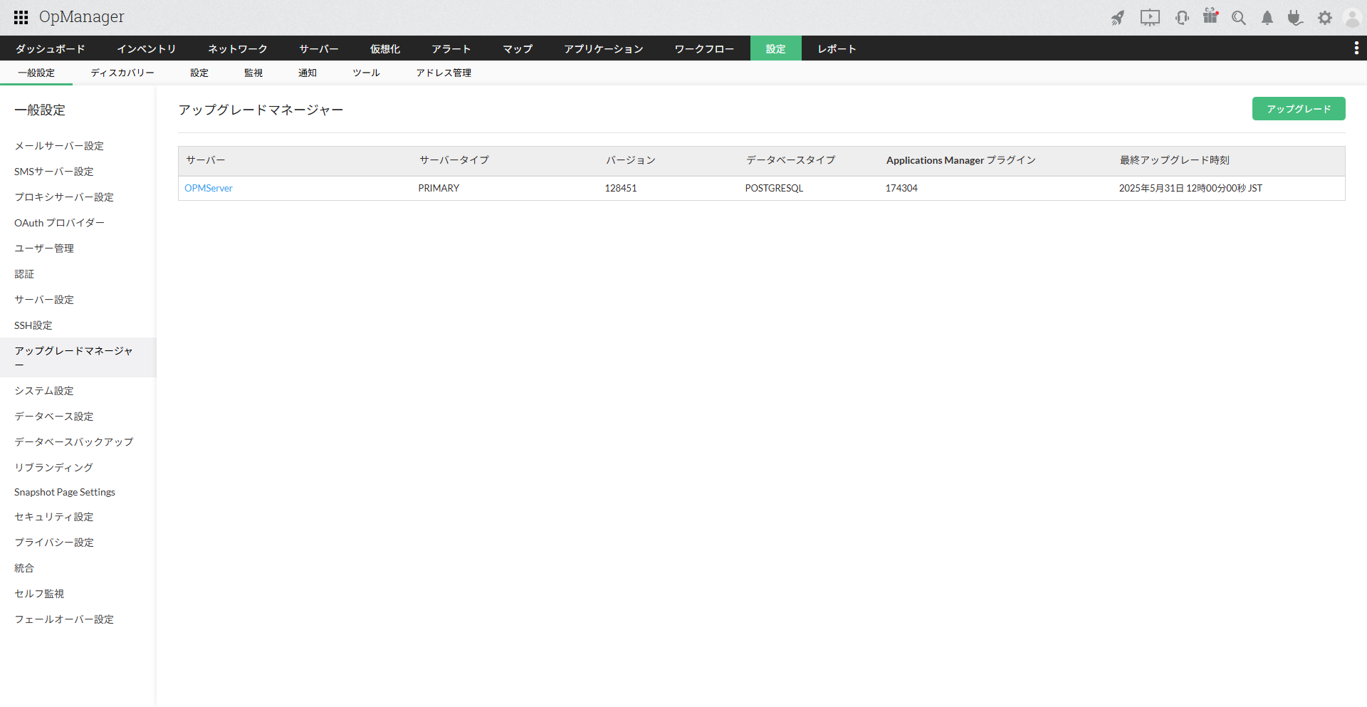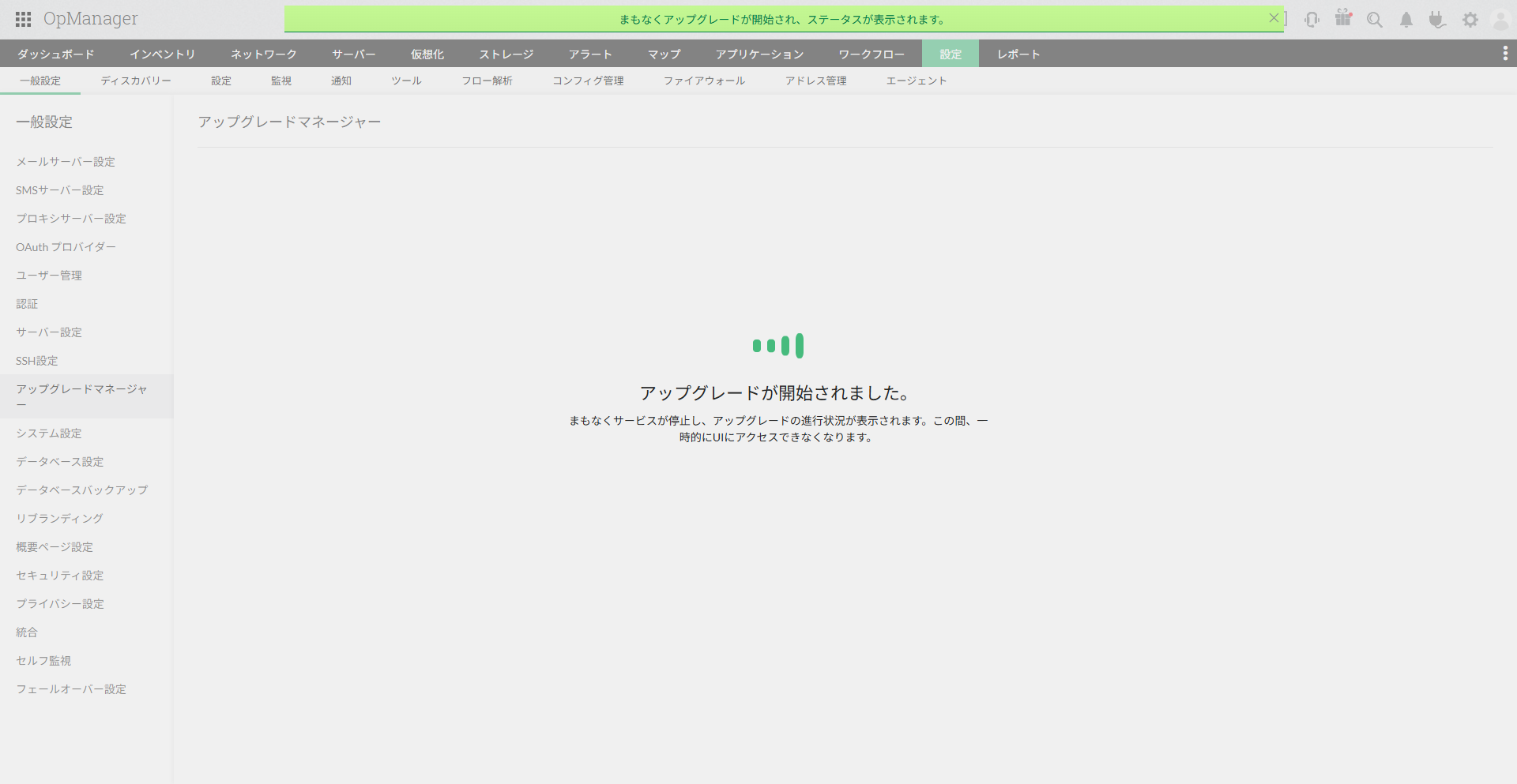 アップグレードが完了すると、[設定]→[一般設定]→[アップグレードマネージャー]のページが自動で表示されます。