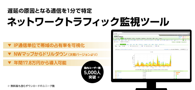 遅延の原因となる通信を1分で特定できるトラフィック監視ツール
