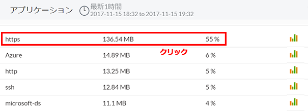 例えば、このような「アプリケーション別のトラフィック受信量」の画面を、わずか4クリックほどで参照することができます。