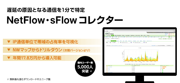 ネットワーク輻輳の原因となる通信を1分で特定できるsFlowコレクター