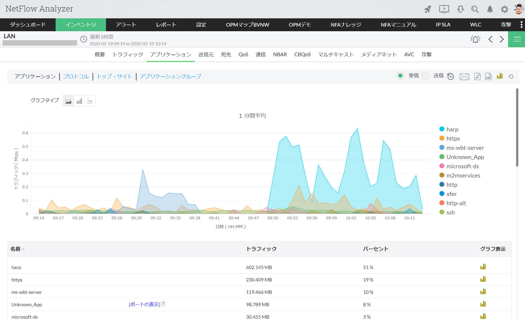 パケットキャプチャは、専門知識や経験が豊富な方が短期間の通信を解析する方法としてとても有益です。一方で「解析に時間がかかる」「容量の関係で長期のログ保管が難しい」といった声もお聞きします。ManageEngineでは、簡単に通信を可視化する解析ツール「NetFlow Analyzer」をご提供しています。次のような特徴があります。
