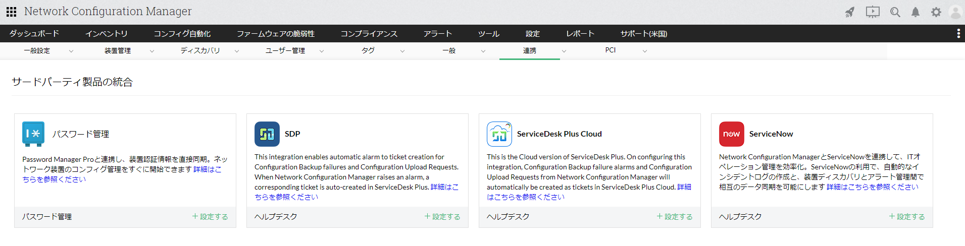 ご利用環境で、弊社ManageEngine製品「ServiceDesk Plus」クラウド版が導入されている場合、Network Configuration Managerと連携して、
