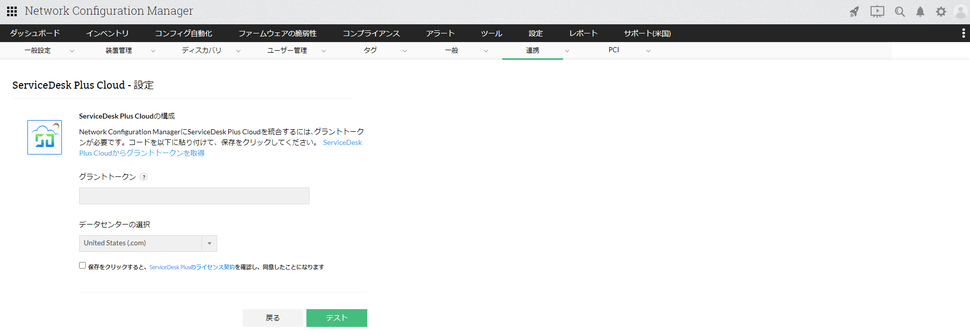以下の手順で、Network Configuration ManagerとServiceDesk Plus(クラウド)との連携設定を行います。