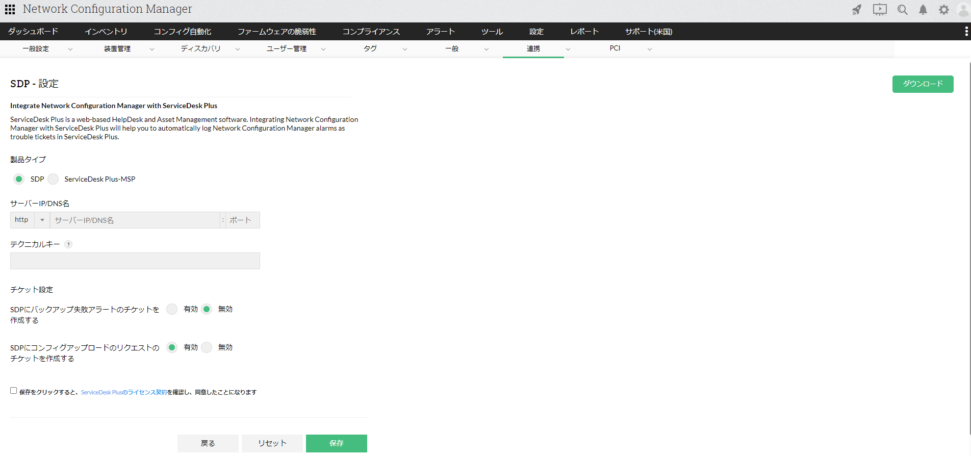 以下の手順で、Network Configuration ManagerとServiceDesk Plus(オンプレミス)との連携設定を行います。