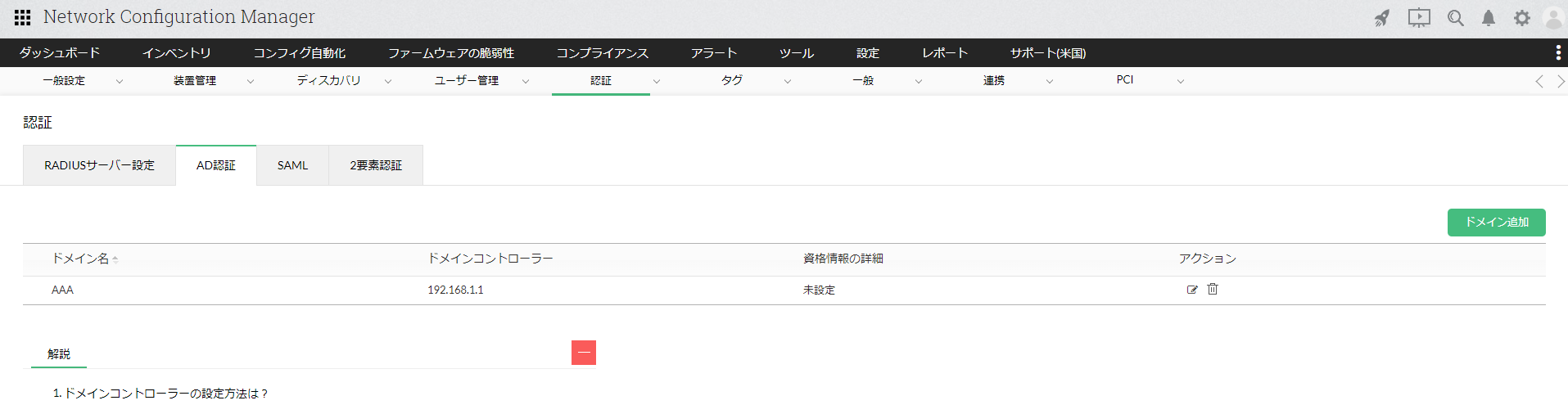 AD認証によりユーザーがNetwork Configuration Managerにログインできるようになります。
