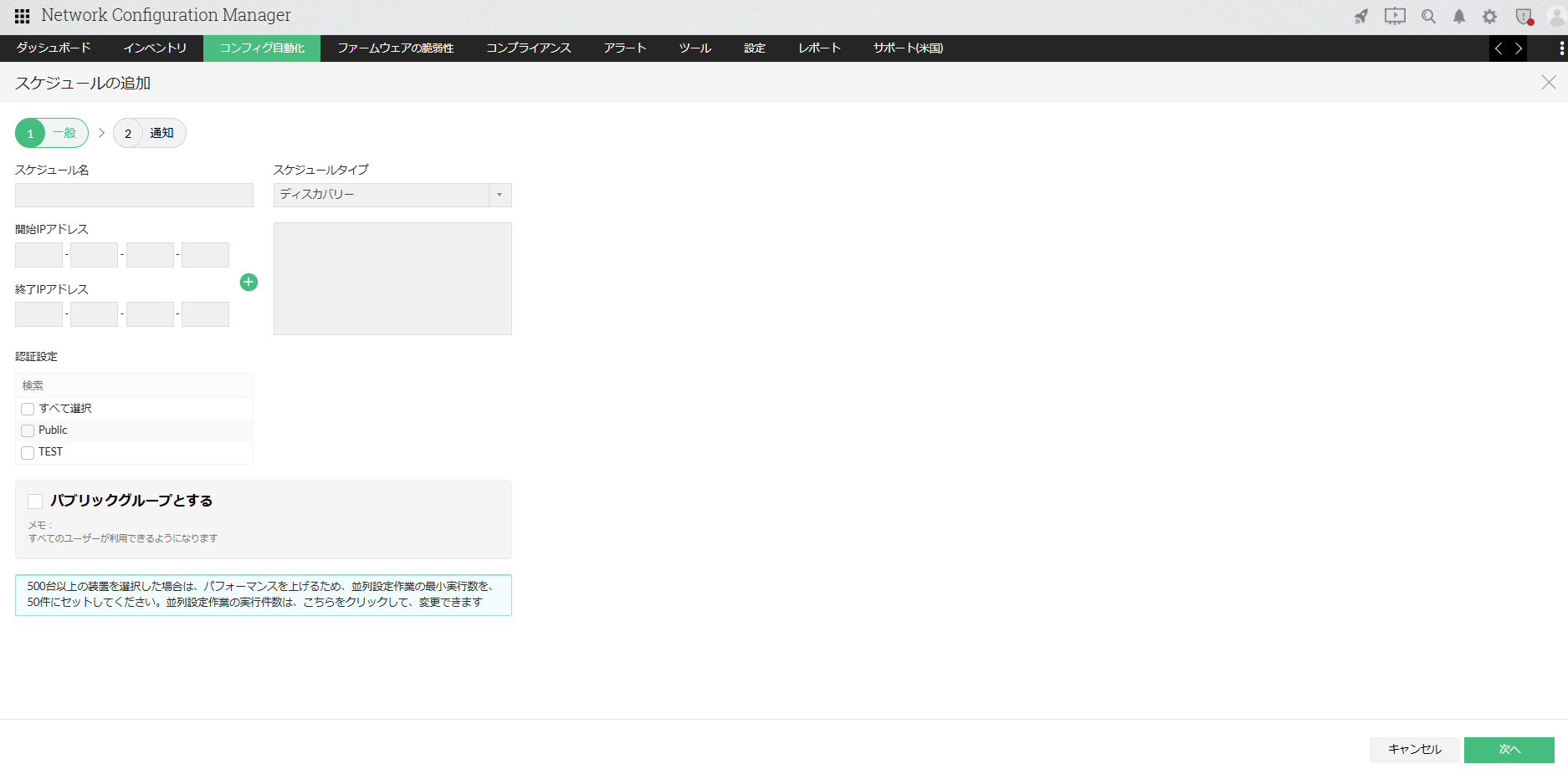 このスケジュールは、ネットワーク内にNW機器が追加された際に、自動で製品に追加するために役立ちます。
