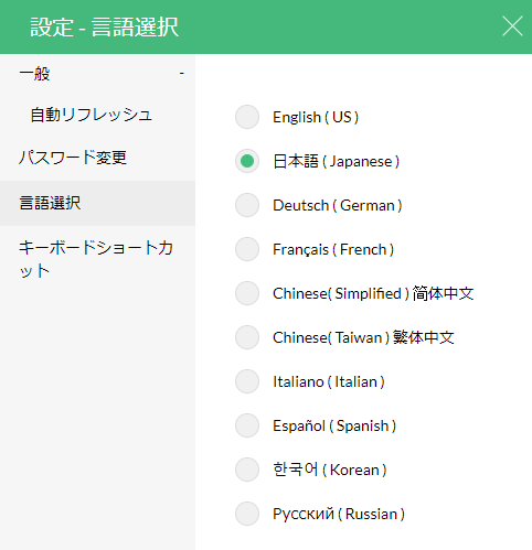 - 任意の言語を選択すると、自動でUIの再読み込みが行われます。