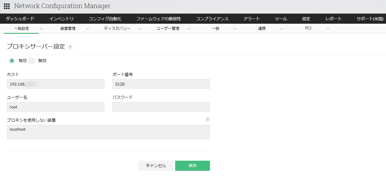 - ホスト:プロキシサーバーのホスト名またはIPアドレス