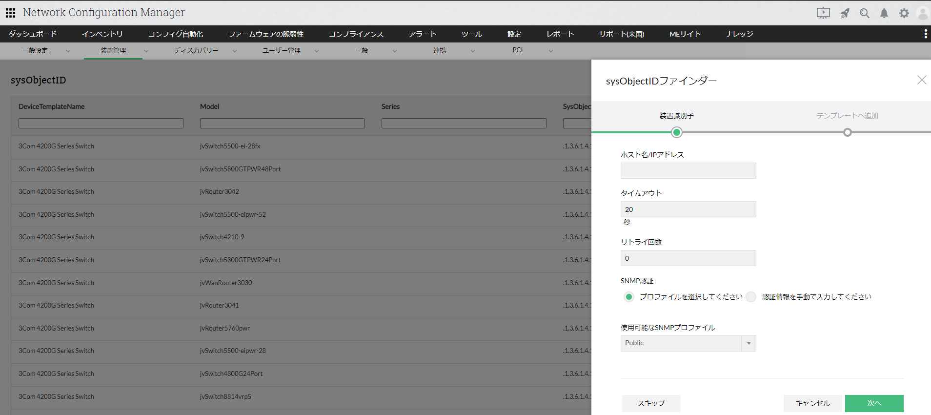 ディスカバリ方法および装置追加方法については、こちらのページをご参照ください。