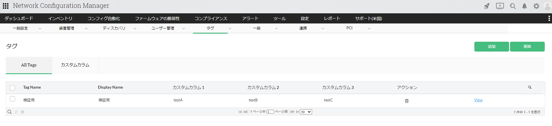 タグが適用された各情報は、[設定]→[タグ]→[All Tags]画面の[View]をクリックすることで各項目ごとに表示されます。