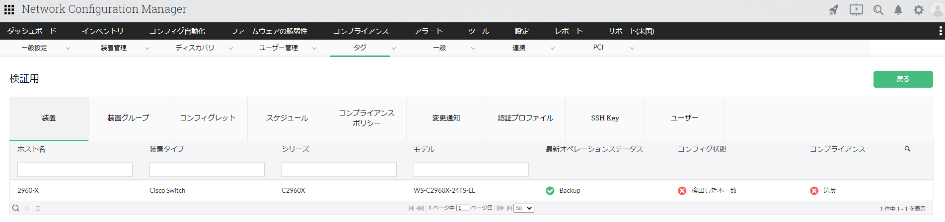 装置グループ、スケジュール、コンプライアンスポリシー、変更通知、認証プロファイル、SSH Keyについては、個々にタグを適用することができません。
