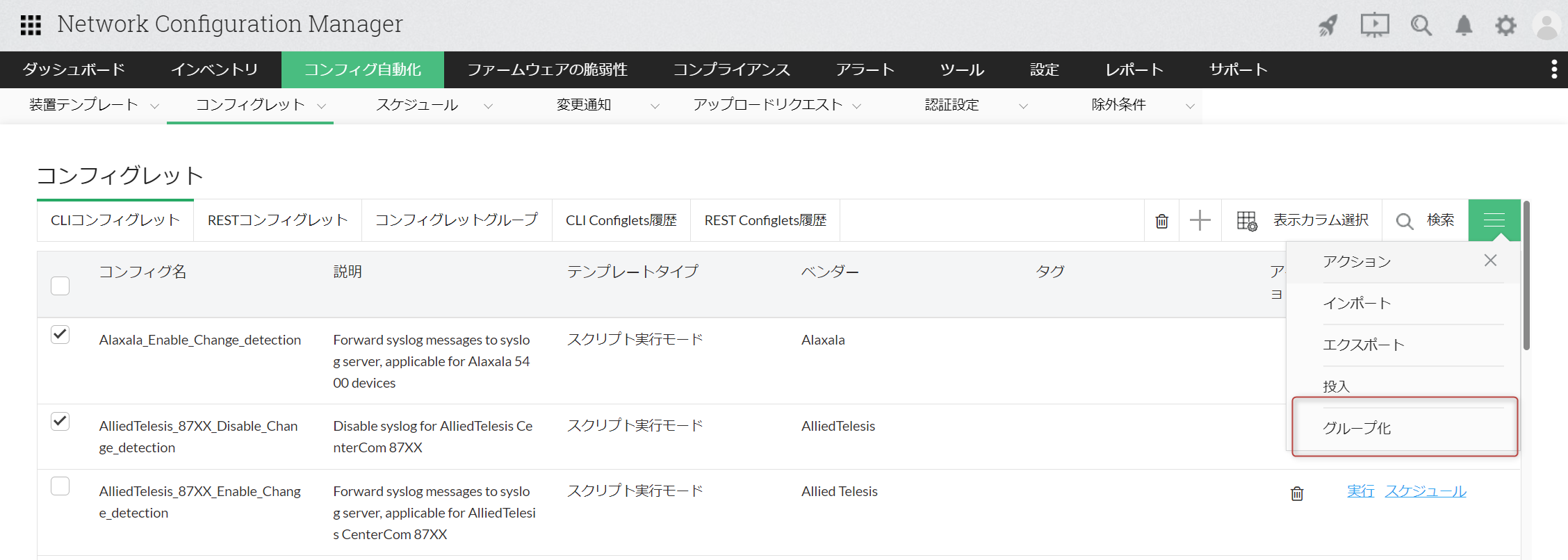 コンフィグレットグループは、作成したコンフィグレットをグループ化し、コンフィグレットの管理を効率化する機能です。