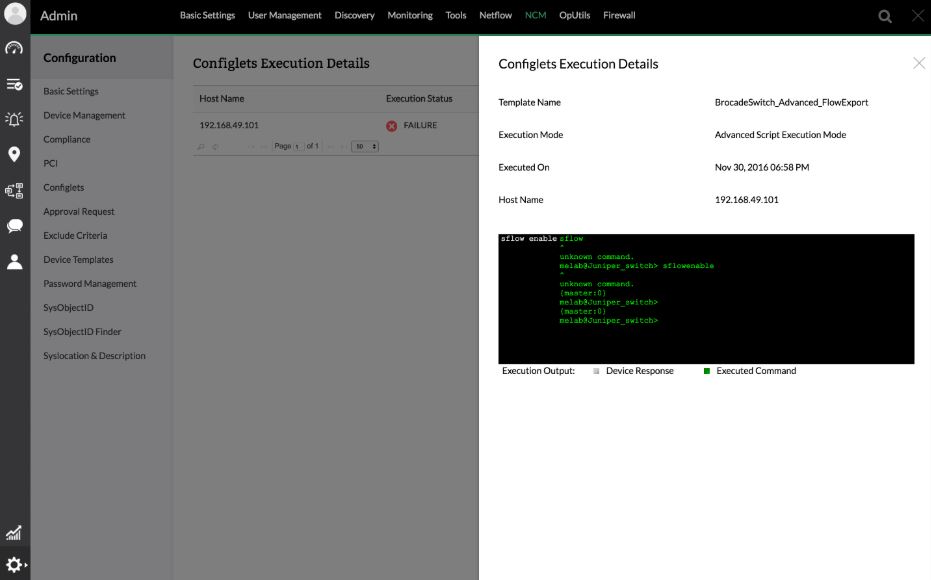 コマンド応答にErrorString(エラー文字列)が含まれている場合、対象装置におけるコンフィグレットの全体的な実行結果は失敗としてマークされます。