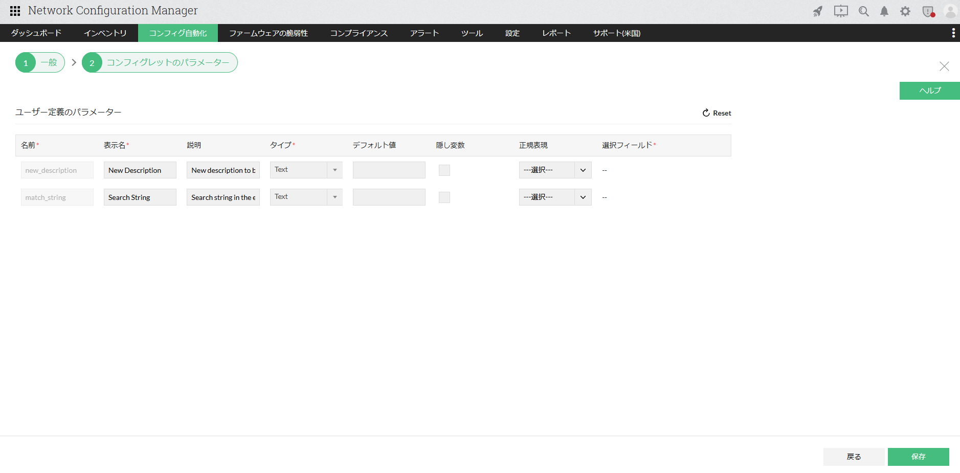 - [コンフィグ自動化]→[コンフィグレット]→[正規表現]を表示