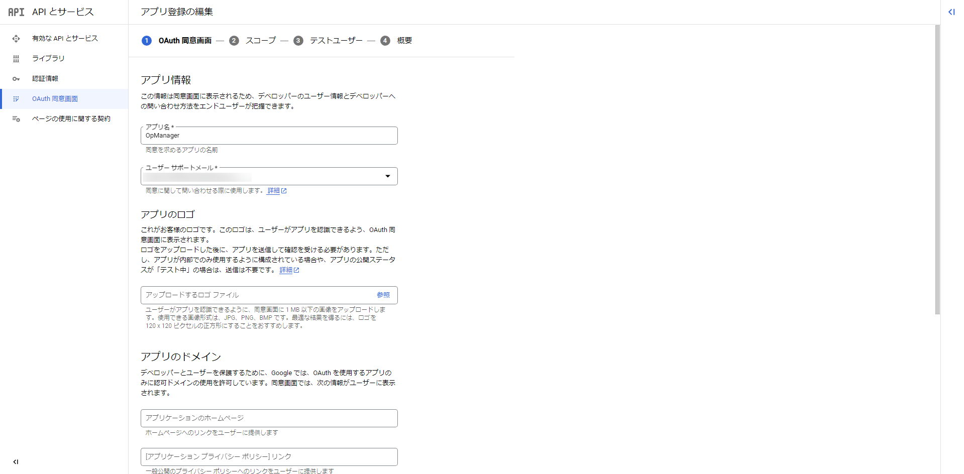 [OAuth 同意画面]を初めて設定する場合は、こちらの手順6-8を実施してください。