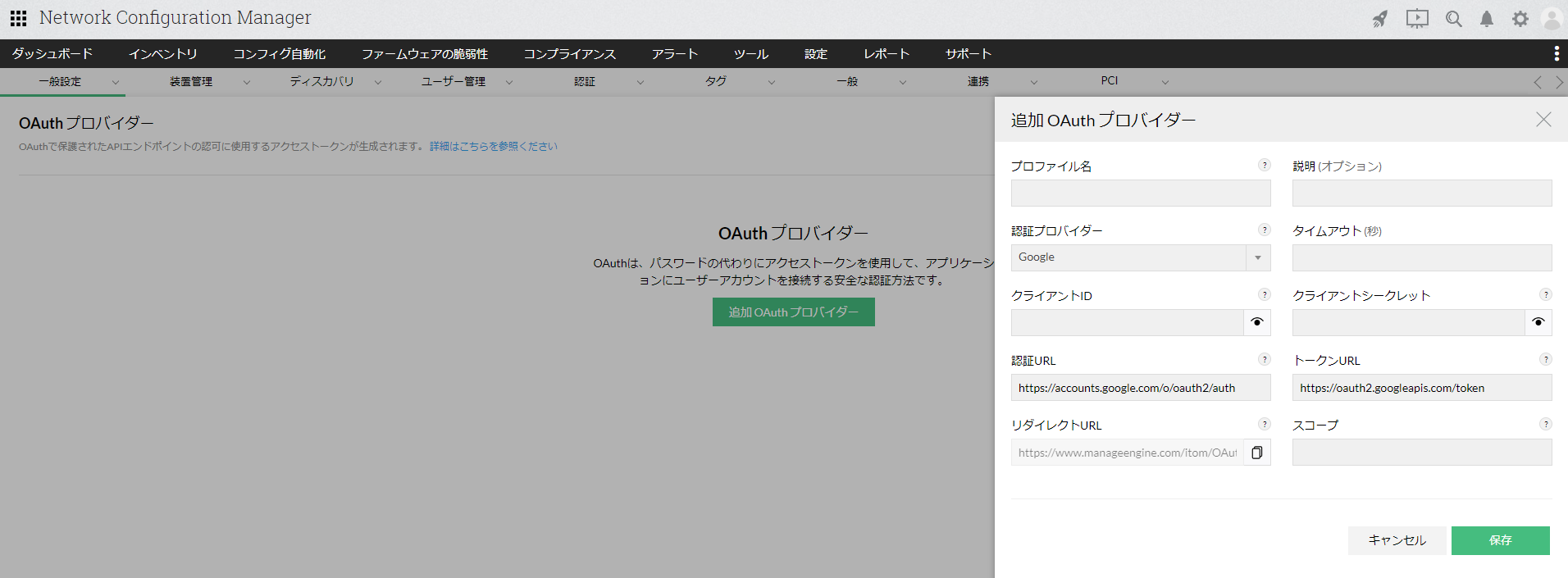 Network Configuration ManagerでOAuthプロバイダーを設定する手順は以下の通りです。