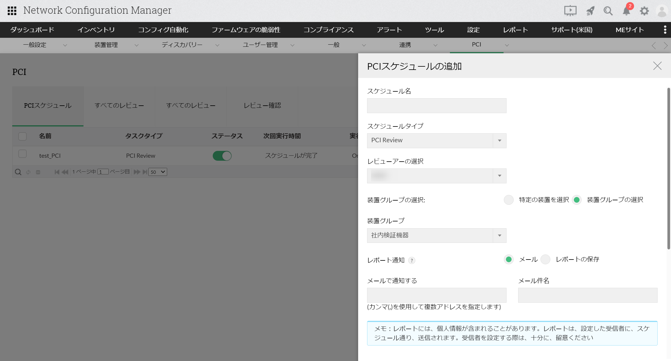 Network Configuration ManagerのPCIレビュー機能を利用し、担当者に対して継続的なレビュー依頼とタスク化を行います。