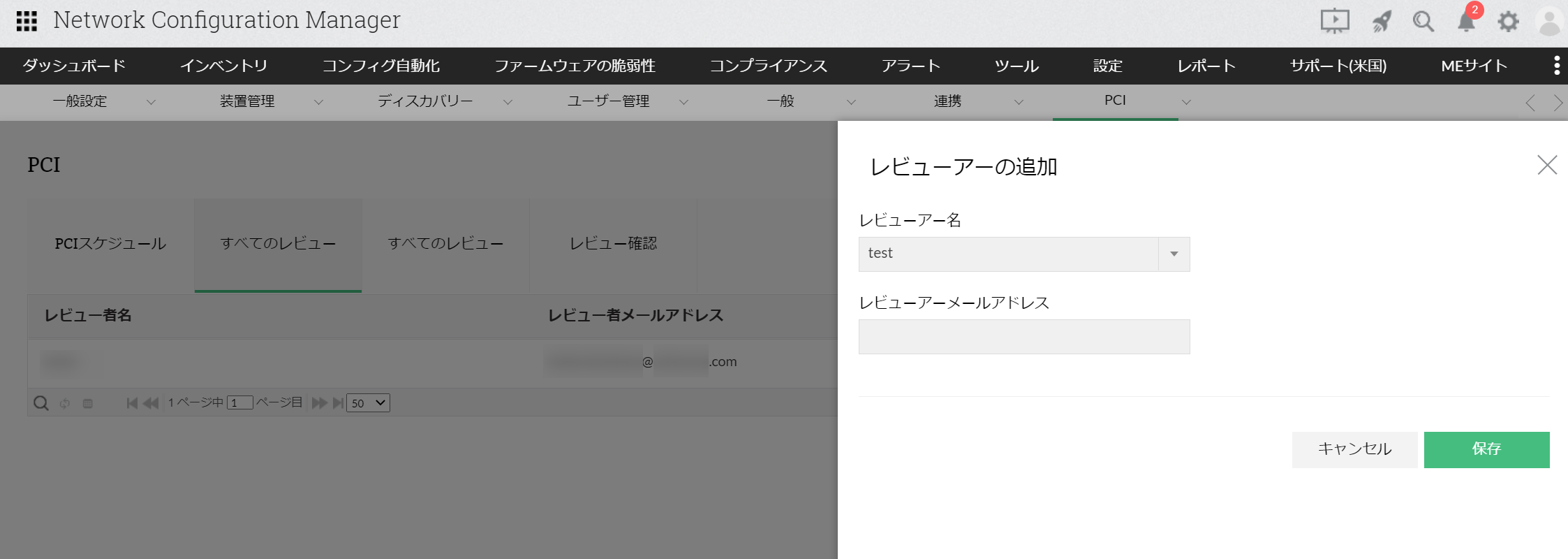 - [設定]→[コンフィグレビュー(PCI)]→[すべてのレビュー(原文:Reviewers)]画面に遷移し、画面右上の[追加]をクリック