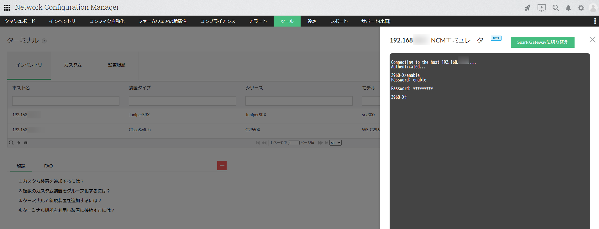 ※SSH/Telnetいずれの場合も、Spark Gatewayを使用してターミナル接続が行われます。