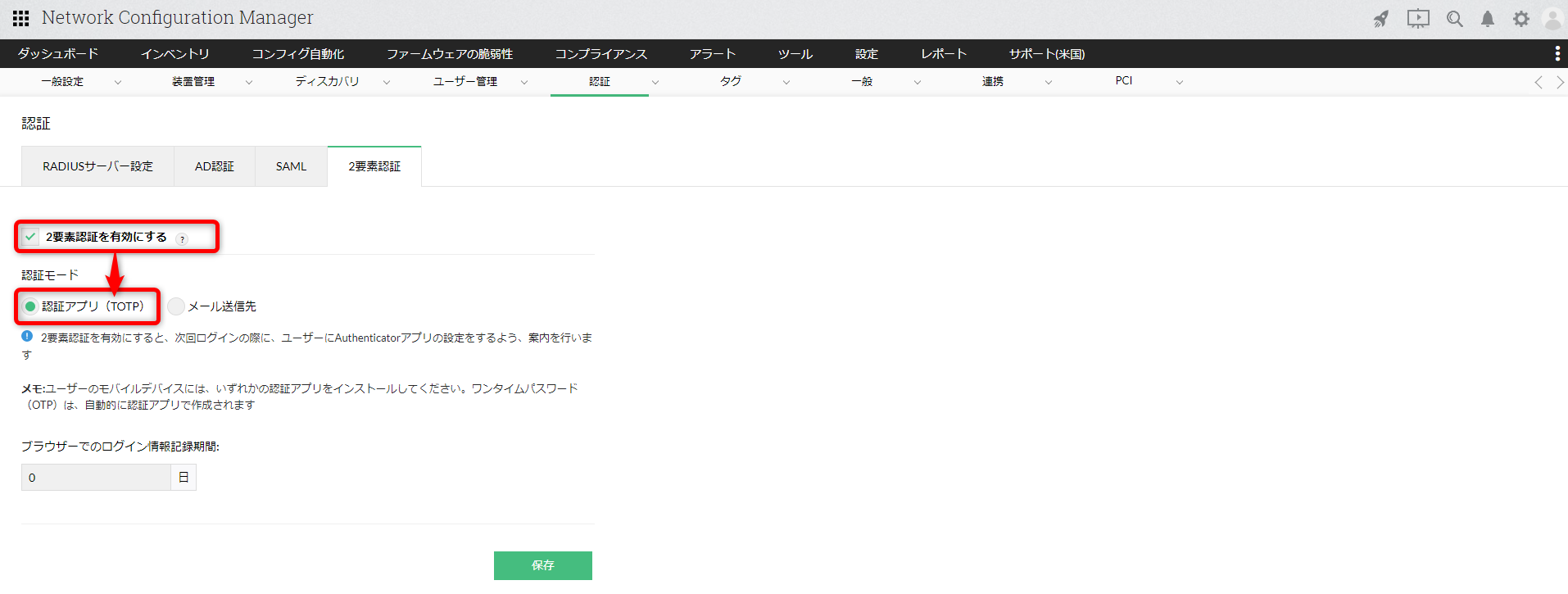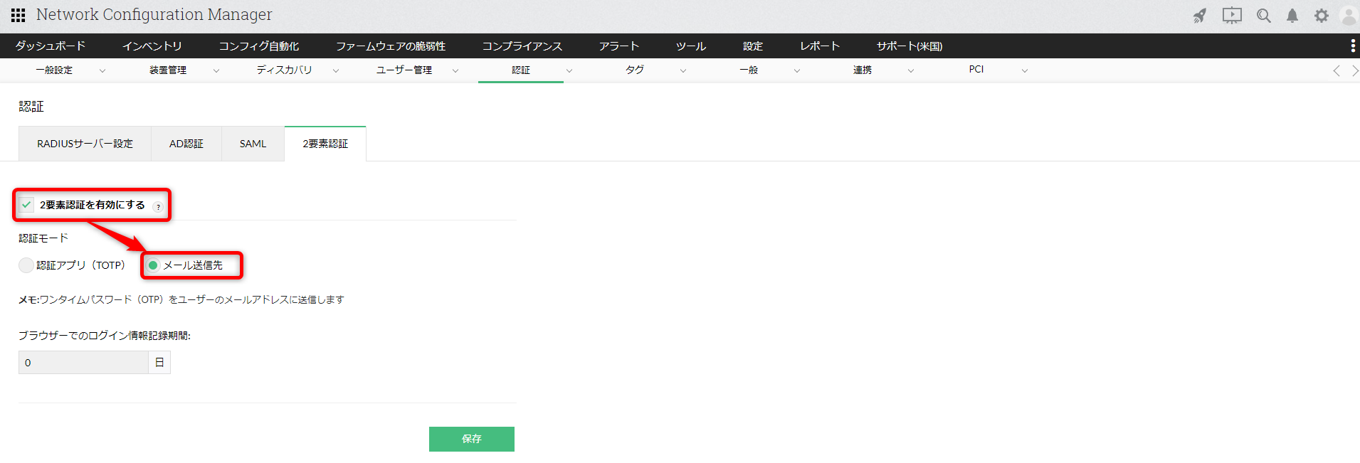 ビルド12.5.476以降、Network Configuration Managerにログインする際の2要素認証機能が実装されました。