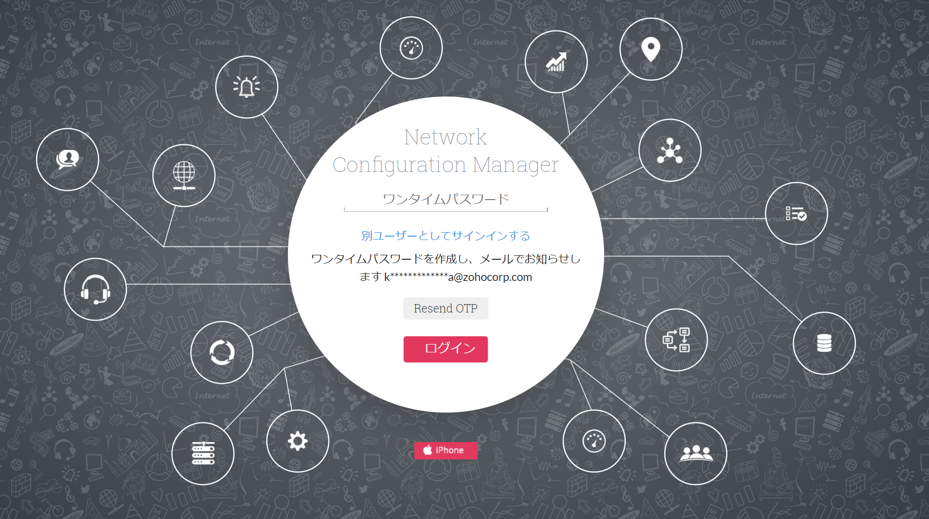 QRコードを読み込むと、以下のように、製品名(Network Configuration Manager)とユーザー名、そのワンタイムパスワードが表示されます。