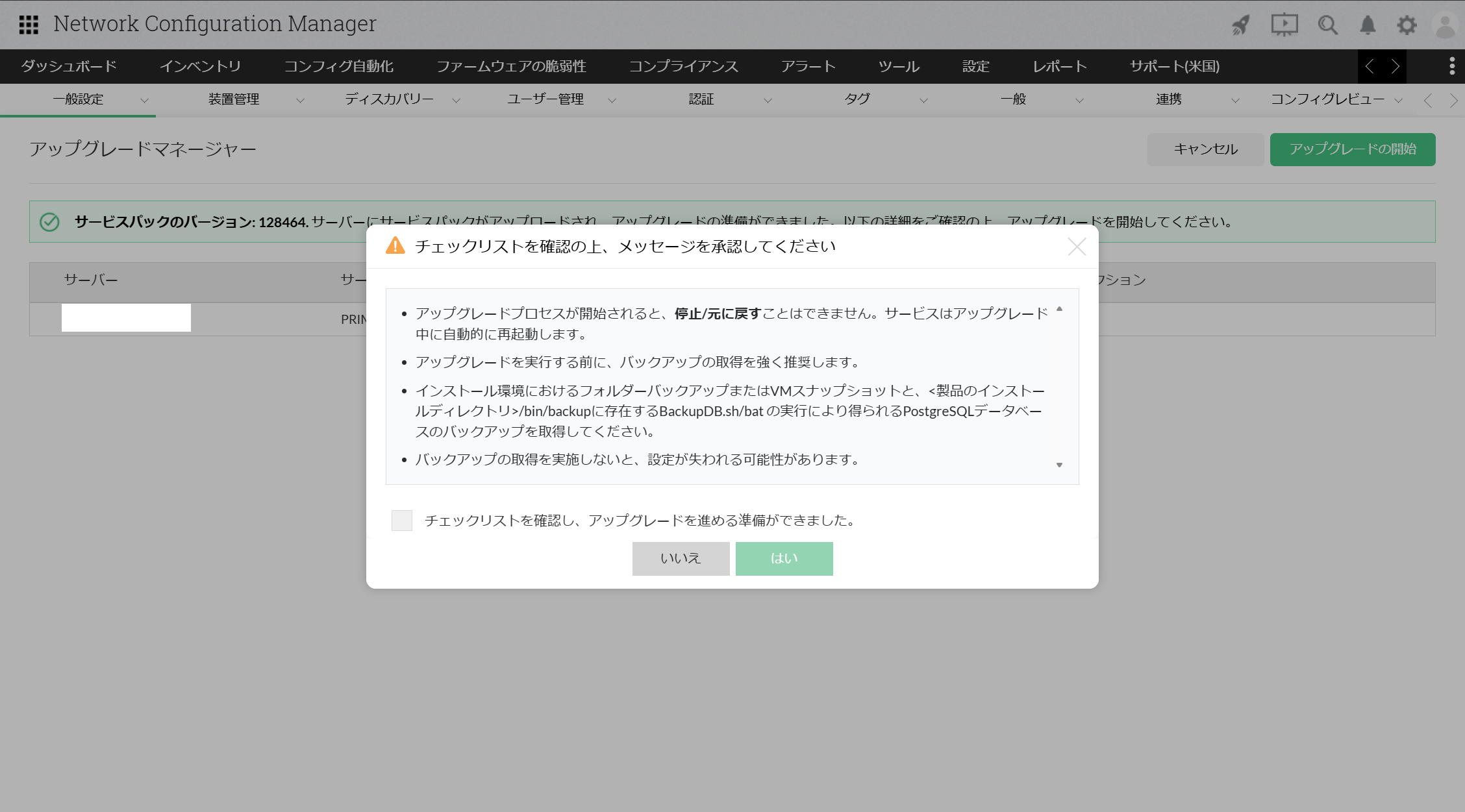 Network Configuration Managerをインストールしているサーバーに接続できる環境でアップグレードを実行してください。